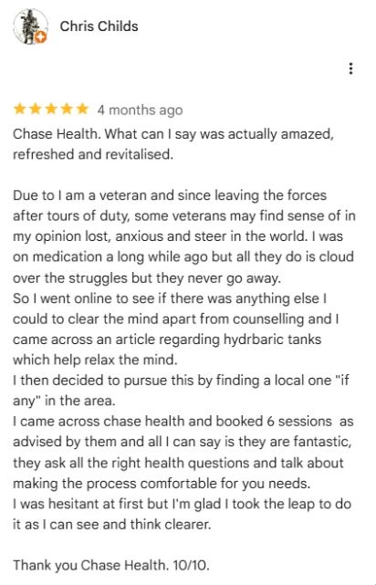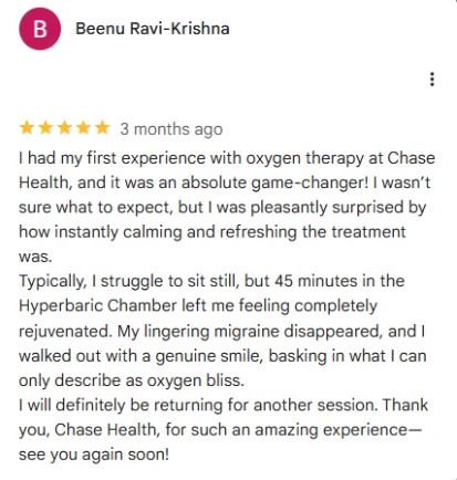 "I had my first experience with oxygen therapy at Chase Health, and it was an absolute game-changer!"